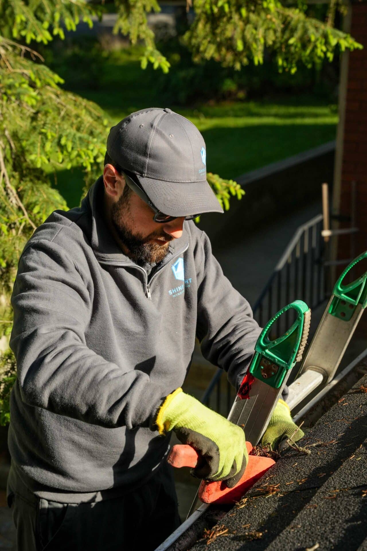 Lorsque des débris s’accumulent dans les gouttières, ils peuvent bloquer l’écoulement de l’eau, entraînant un débordement d’eau et des dommages au toit, au revêtement extérieur et aux fondations. Le processus consiste à retirer les débris des gouttières et des descentes pluviales à l’aide d’outils spécialisés comme une échelle, des gants, une pelle et un tuyau (uniquement si nécessaire et pendant la saison). Le nettoyage des gouttières doit être effectué au moins deux fois par an, une fois à l’automne après la chute des feuilles, et une autre fois au printemps.